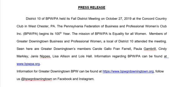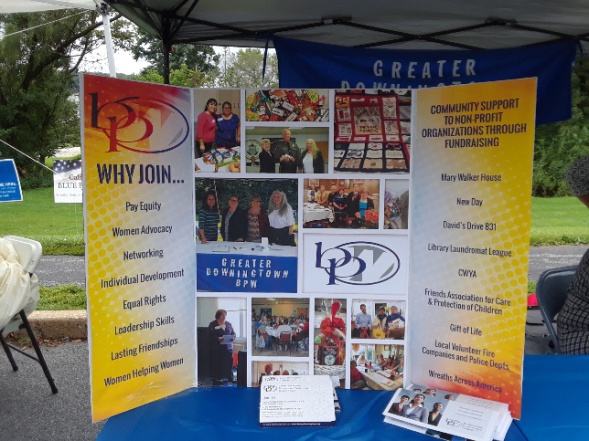 As part of their efforts to promote new members, Greater Downingtown BPW participated in the Caln Township “Community Day” in Thorndale, PA on Saturday, 9/8/18. This year marks Caln Township’s 150th year Anniversary.
